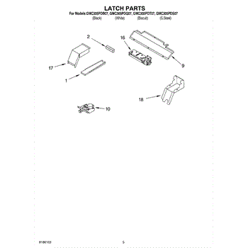 Parts for Whirlpool GMC305PDS07: 04 - Latch Parts