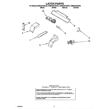Parts for Kitchenaid KEMC307KBL03: 04 - Latch Parts