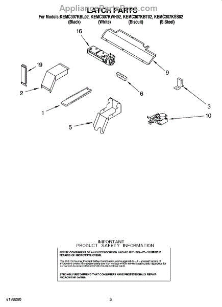 Parts for Kitchenaid KEMC307KSS02: 04 - Latch Parts