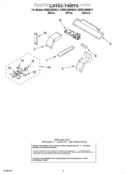 Parts for Kitchenaid KEMC308HWH3: 04 - Latch Parts