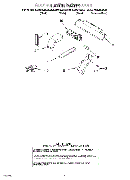 Parts for Kitchenaid KEMC308KWH01: 04 - Latch Parts