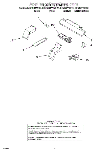 Parts for Kitchenaid KEMC377KBL01: 04 - Latch Parts