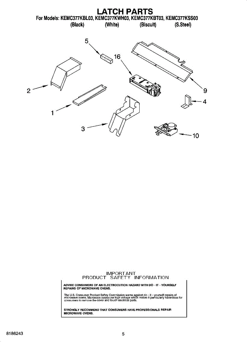 Parts for Kitchenaid KEMC377KBL03: 04 - Latch Parts