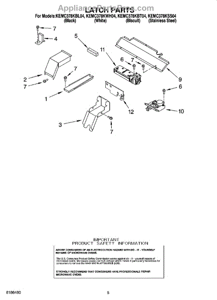 Parts for Kitchenaid KEMC378KBL04: 04 - Latch Parts