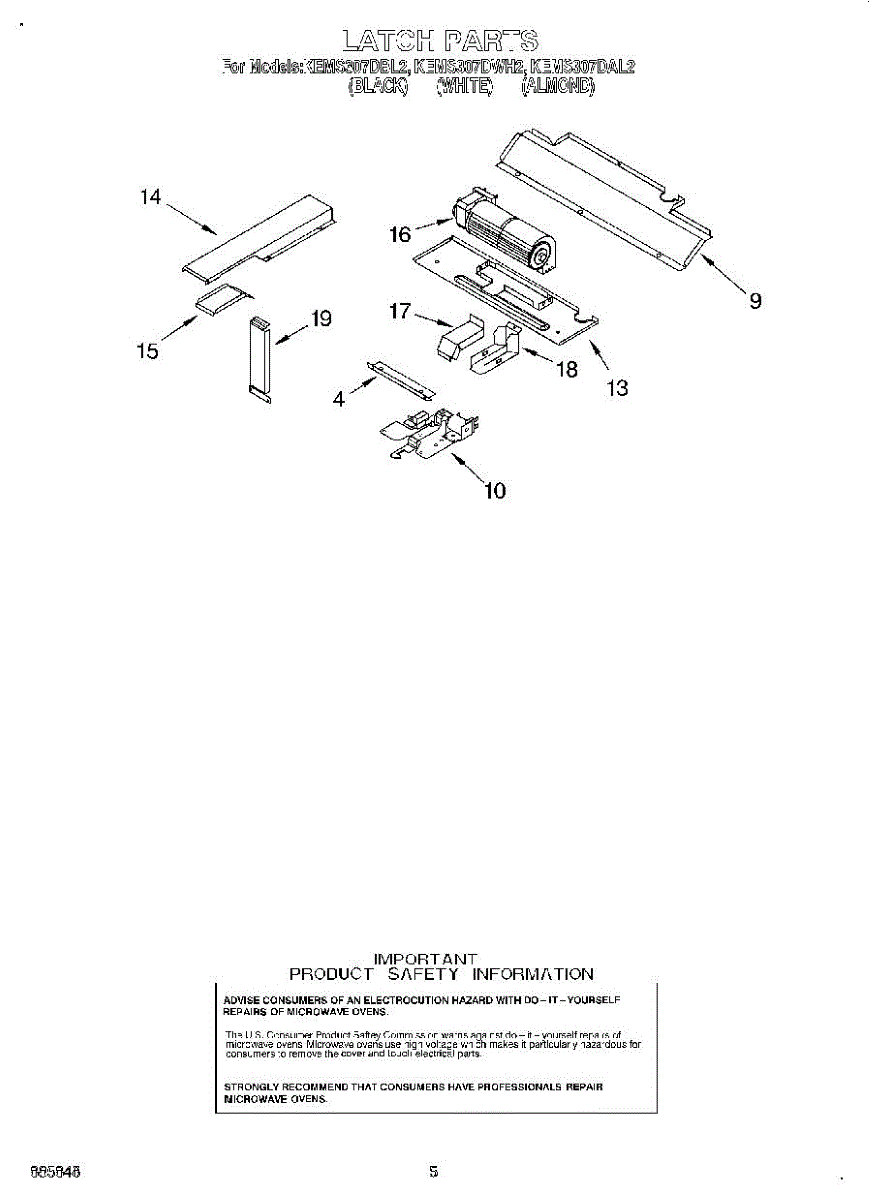 Parts for Kitchenaid KEMS307DAL2: 04 - Latch Parts