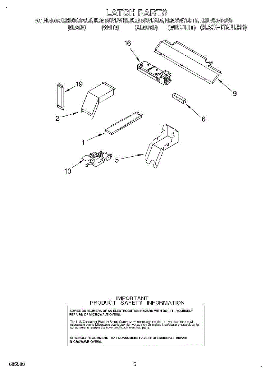 Parts for Kitchenaid KEMS307DAL6: 04 - Latch Parts