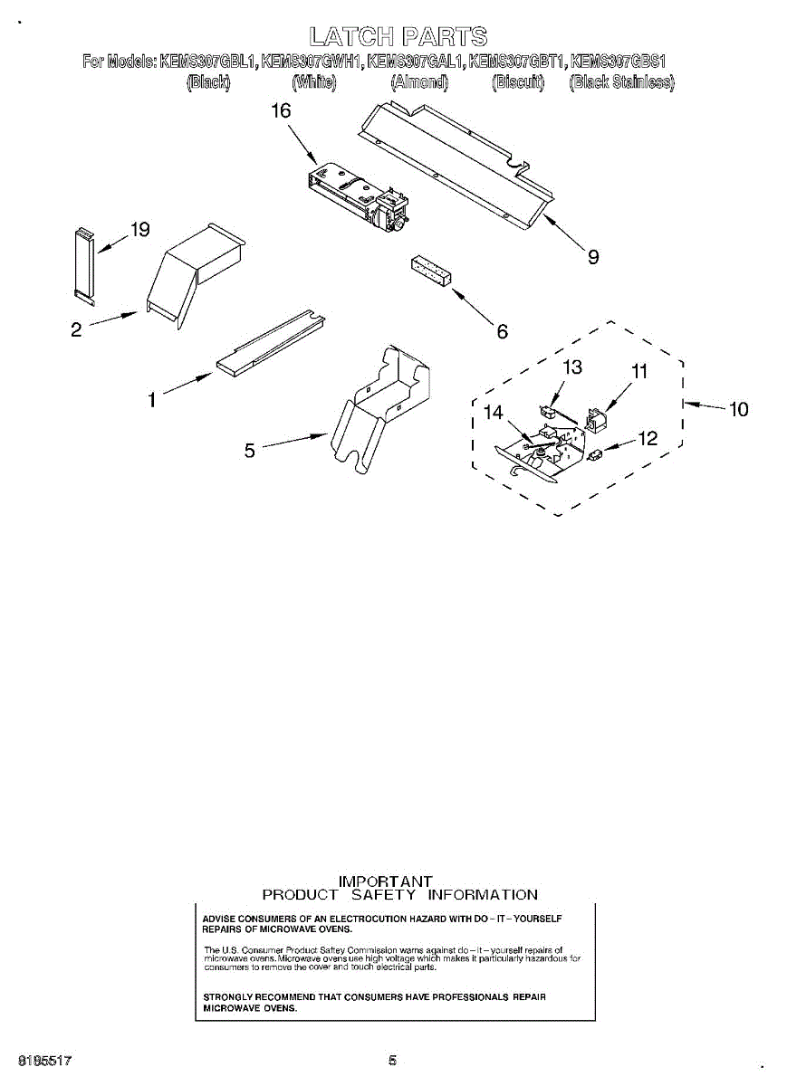 Parts for Kitchenaid KEMS307GAL1: 04 - Latch Parts