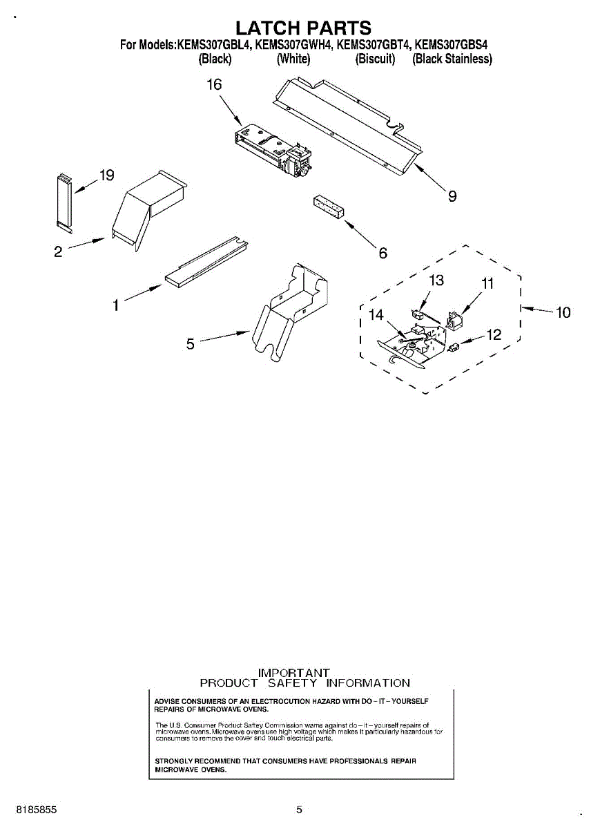 Parts for Kitchenaid KEMS307GBS4: 04 - Latch Parts