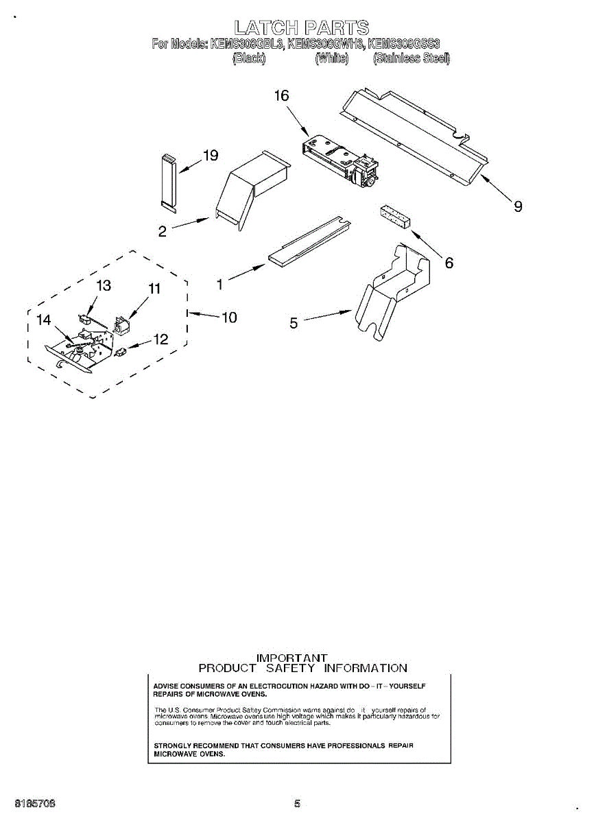 Parts for Kitchenaid KEMS308GSS3: 04 - Latch Parts