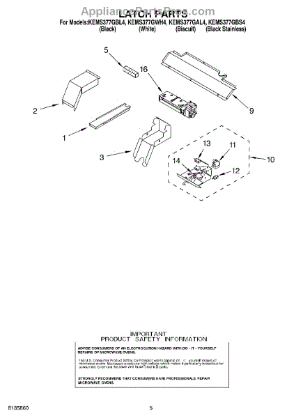 Parts for Kitchenaid KEMS377GBS4: 04 - Latch Parts