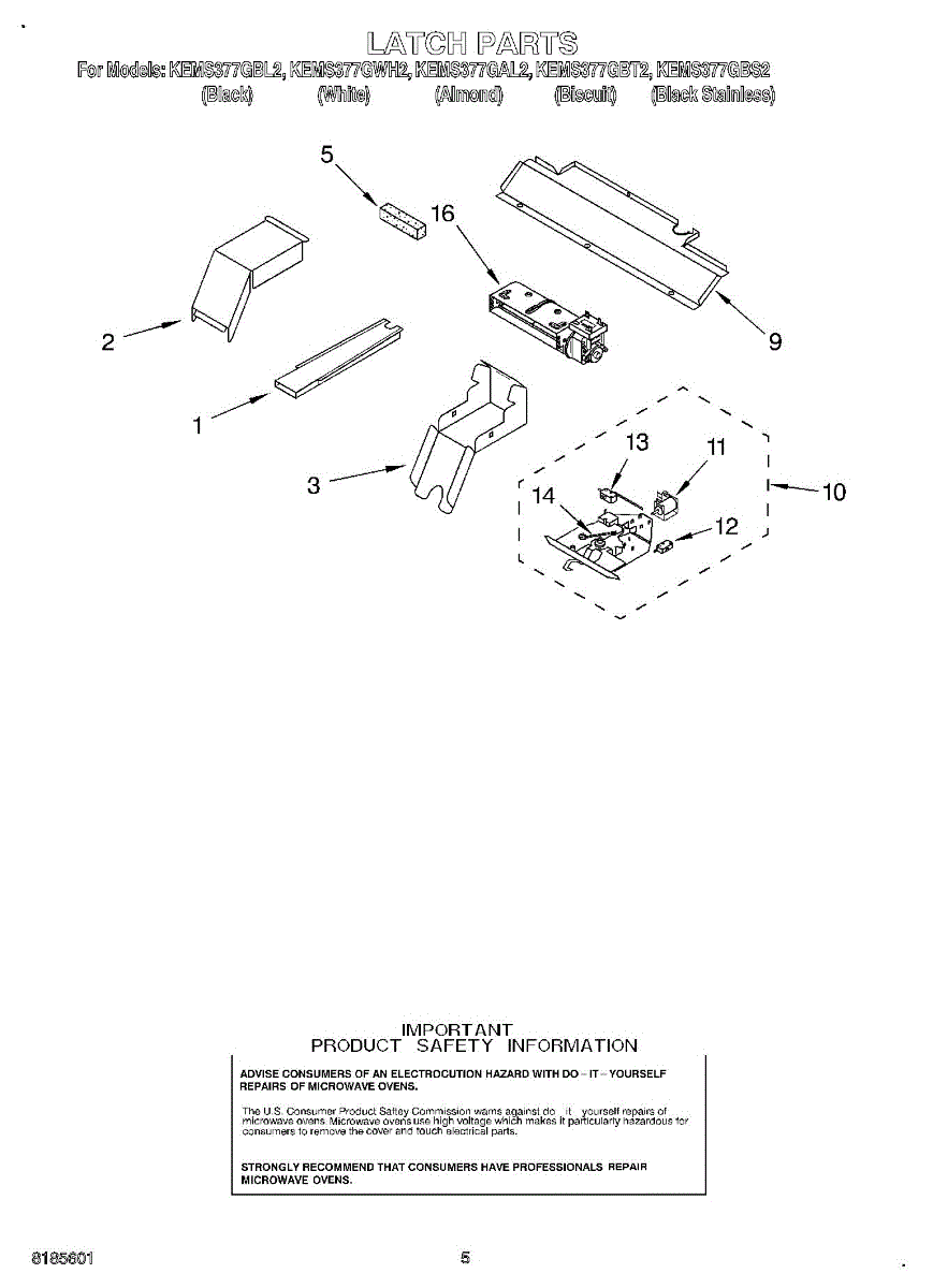 Parts for Kitchenaid KEMS377GBT2: 04 - Latch Parts