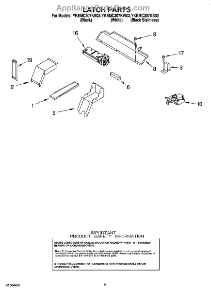 Parts for Whirlpool YKEMC307KB03: 04 - Latch Parts