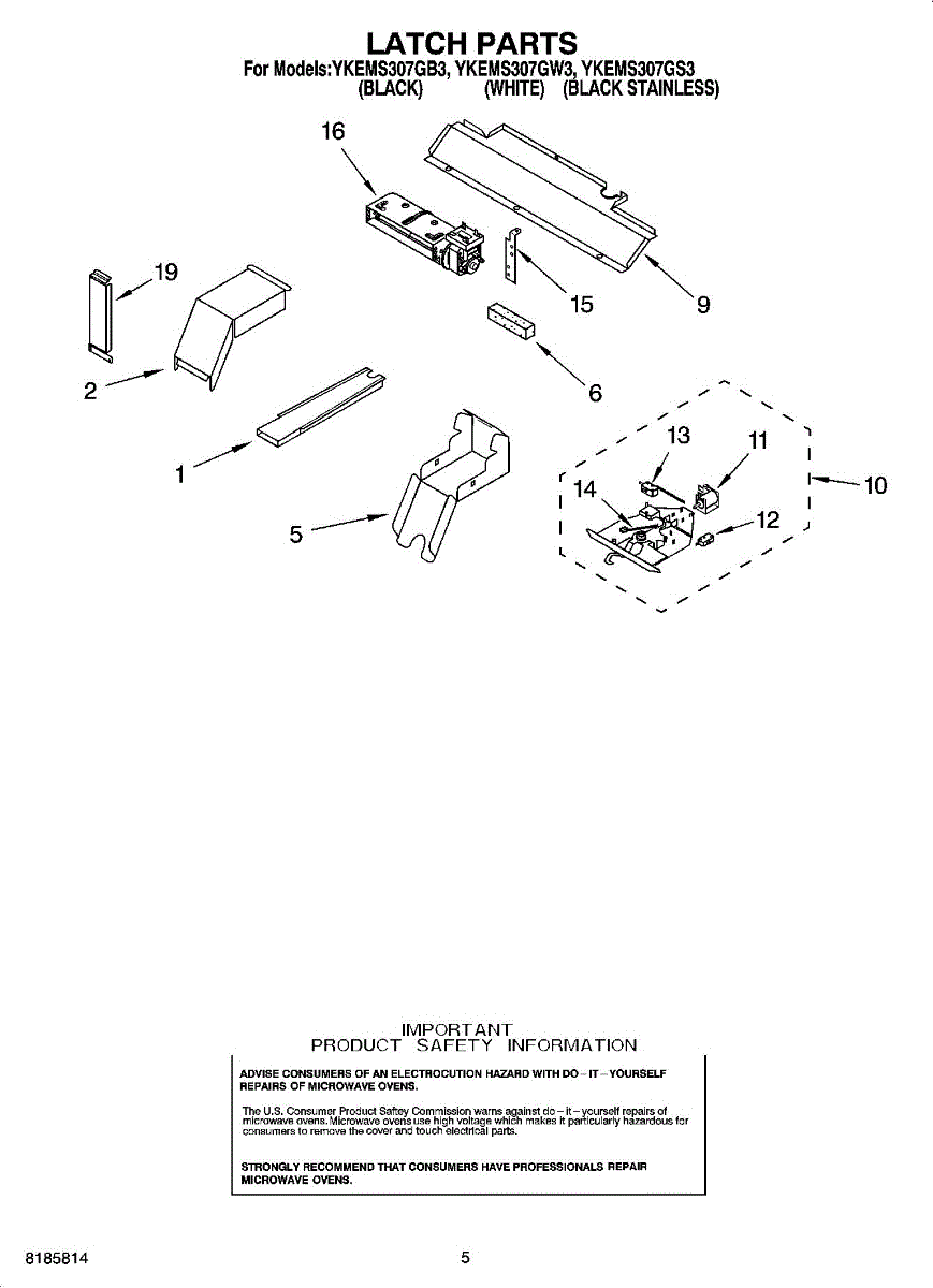 Parts for Whirlpool YKEMS307GS3: 04 - Latch Parts