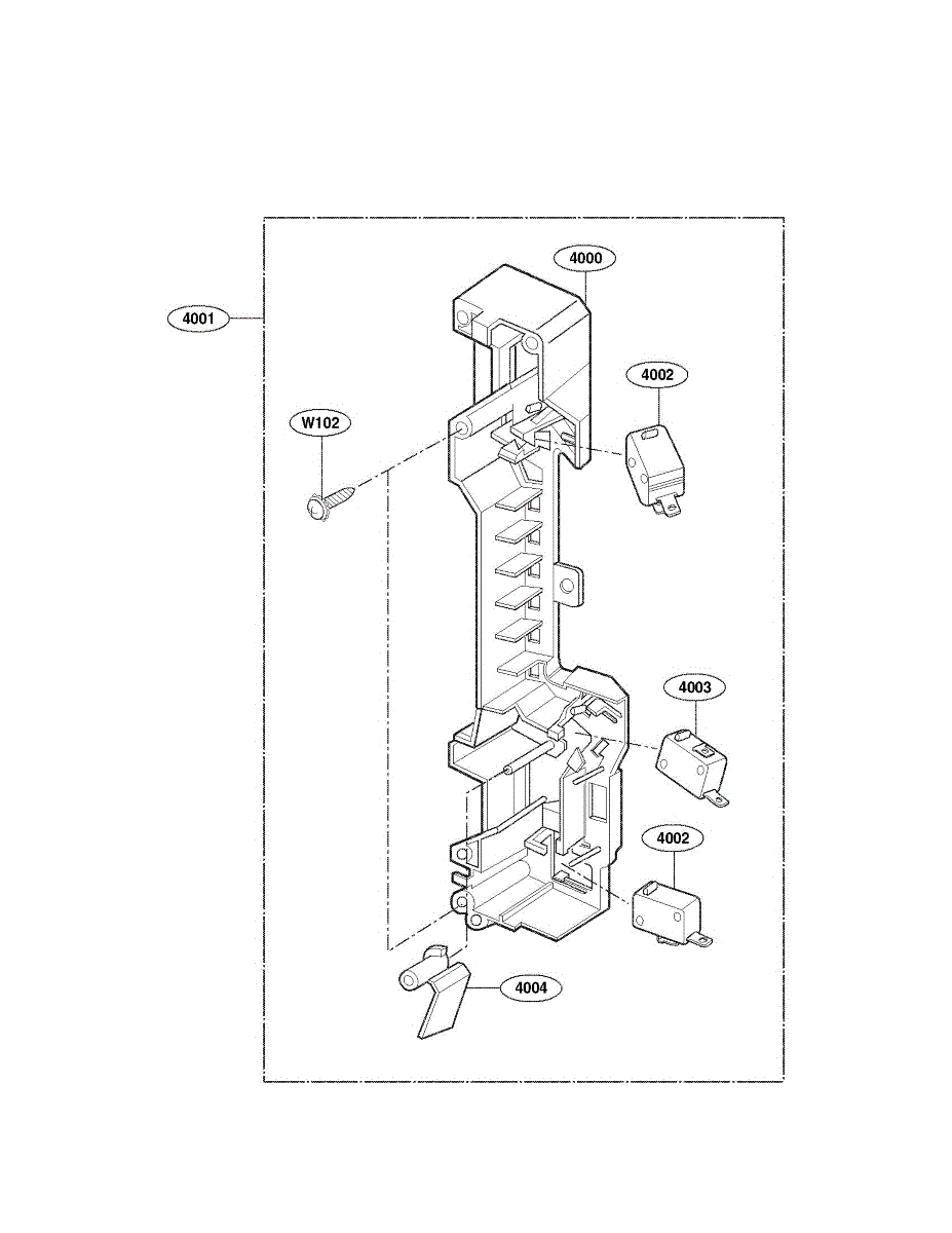The Door Latch Housing and Interlock Switch Assembly is an OEM replacement part for LG microwaves. It consists of the protective door latch housing casing along with the two-door switches and interlock switch. The interlock switch prevents microwave energy from being generated inside the oven when the door is open. It shuts off all power once a faulty seal is detected between the door and cavity. Symptoms of issues can include:
