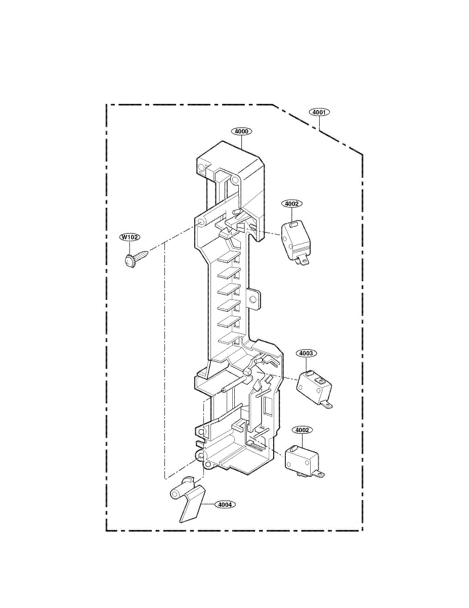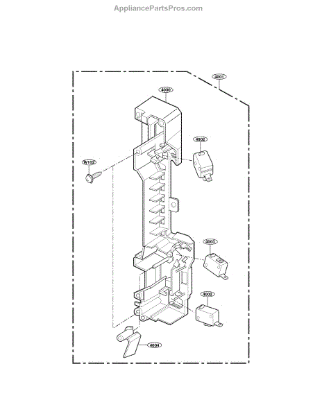 The Microwave Door Switch is an OEM replacement part for LG countertop microwaves. It monitors the door position electrically to prevent unsafe oven operation if ajar.