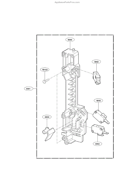 The Microwave Door Switch is an OEM replacement part for LG countertop microwaves. It monitors the door position electrically to prevent unsafe oven operation if ajar.