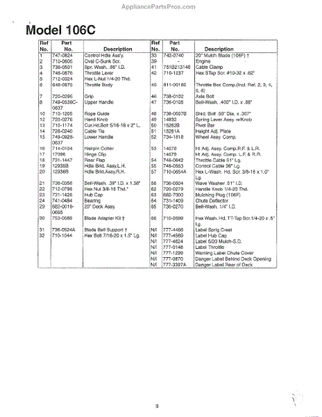 Parts for Mtd SKU3709809: Lawn Mower Page 3 Parts