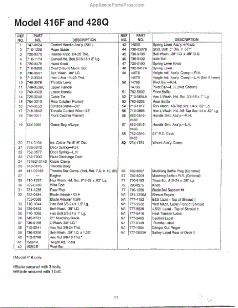 Parts for Mtd 11A-416F788: Lawn Mower Page 2 Parts