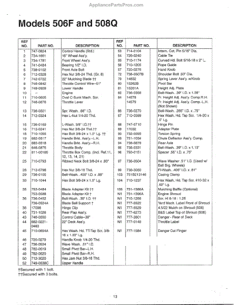 Parts for Mtd 11A-506F788: Lawn Mower Page 2 Parts