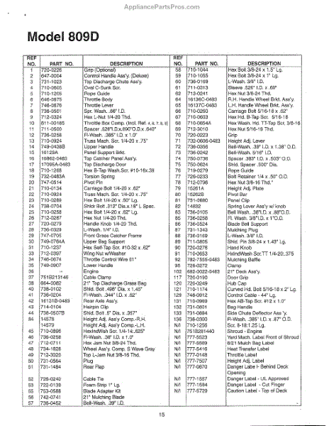 Parts for Mtd 11A-809D788: Lawn Mower Page 2 Parts