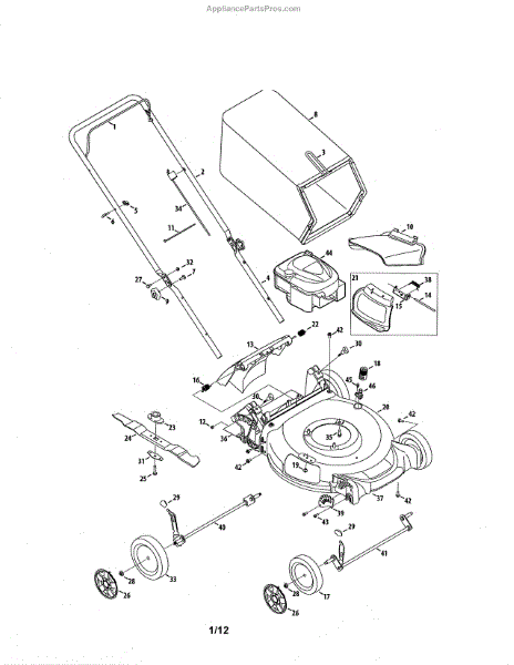 This is a genuine replacement lower handle part. The lower handle is used on push lawn mowers. This handle connects the upper handle to the mower. This part should be replaced when there is damage to the bolt holes or if it is bent. It is not easily worn, and therefore does not have to be replaced often.To replace this part, a 7/16th inch wrench or a 9/16th inch socket wrench is needed. Remove the upper shoulder bolt to detach the upper handle. Remove the lower handle and place the new replacement part. Bolt the upper handle to the lower handle. On occasion, the bolt connecting the handles may need replacement if worn. Any new bolts will need to be purchased separately. Otherwise, previous bolts used on the worn lower handle can be reused. If the part is bent, replacement may require a mallet to dislodge or remove the damaged part. This is a genuine MTD replacement part. This part is compatible with most lawn mowers. This part is sold separately.