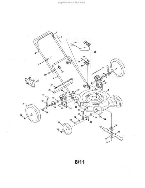 This blade adapter is made to attach a lawn mower cutting blade to the drive shaft of a push mower. Though it is made of sturdy metal and is tightly fastened to the mower's drive, the adapter and blade may wear and loosen over time. This can present a dangerous situation as well as poor cutting performance for the blade. Also, each adapter has a small insert tab that fits into the blade attachment. This tab, called a “key,” is actually a shear pin. Should the blade strike a solid object, the key will sheer off, preventing the blade from coming loose or suffering irreparable damage. The solution to either of these problems is to replace the blade adapter. The blade itself should be closely examined to make sure it fits the new adapter with no wobble or slack. To replace the blade adapter, turn the mower on its side with the air filter on top. Use a ratchet to remove the bolt that attaches the blade and adapter to the drive shaft. Make certain to fit the new adapter key into the keyway on the shaft. Always use a replacement part like this one, that is OEM certified to be identical to the original. This blade adapter is compatible with Ryobi, Yard Machines, Yard Man, Huskee, Cub Cadet, Troy-Bilt, MTD, and Bolens mowers.