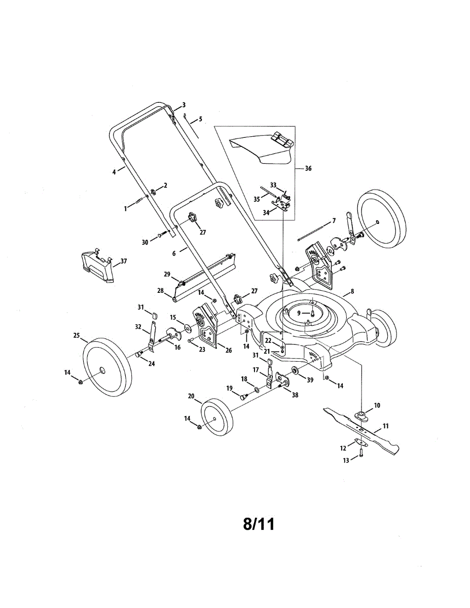 Replacement lower handle for walk-behind mowers. Installs at the base of the handle assembly. Replace if cracked, bent, broken, or damaged from impact.