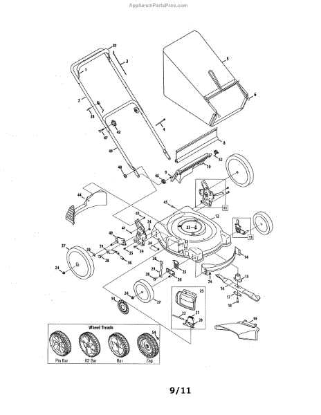This wheel assembly is an authentic OEM replacement part sourced directly from the manufacturer for use on lawnmowers. This is a complete wheel assembly. The rim and wheel are one complete unit. If the lawnmower wheel is damaged and needs to be replaced, the entire piece can be taken off the mower and this assembly installed. Wheels can be damaged due to stationary objects that the mower runs over during operation or simply due to normal wear and tear. If the lawnmower is shaky or unstable during operation, the wheels should be inspected to determine which wheel needs replaced. It is a good idea to have an extra wheel assembly on hand so that the lawnmower can be repaired quickly if a wheel is damaged during use. Make sure the lawnmower is parked on a flat surface and that the spark plug is removed before repairing the wheel. Remove the nut holding the wheel on the shaft and set the nut aside. Place the new wheel on the shaft and use the nut to secure it. This wheel assembly is sold as an individual unit. It is designed for use on lawnmowers manufactured by Craftsman and MTD.