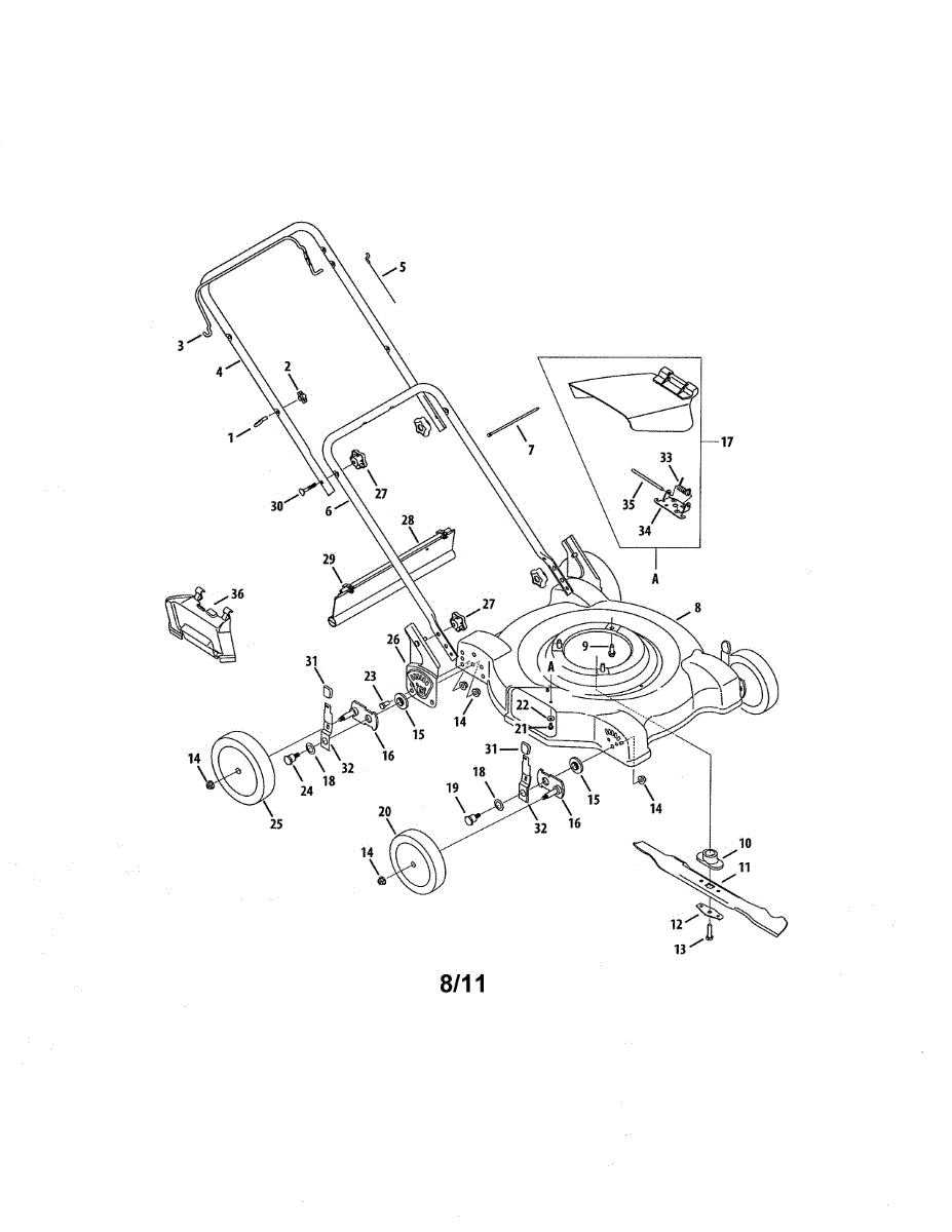Replacement lower handle for walk-behind mowers. Installs at the base of the handle assembly. Replace if cracked, bent, broken, or damaged from impact.