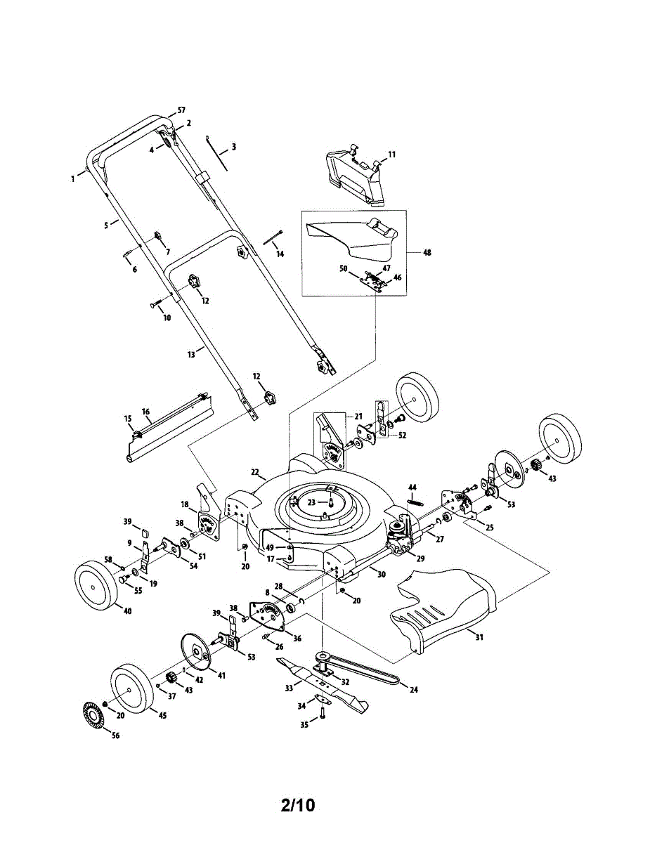 Height adjustment assembly for 22-inch self-propelled walk-behind mowers. Replace this part if the original assembly is broken, cracked, or missing.