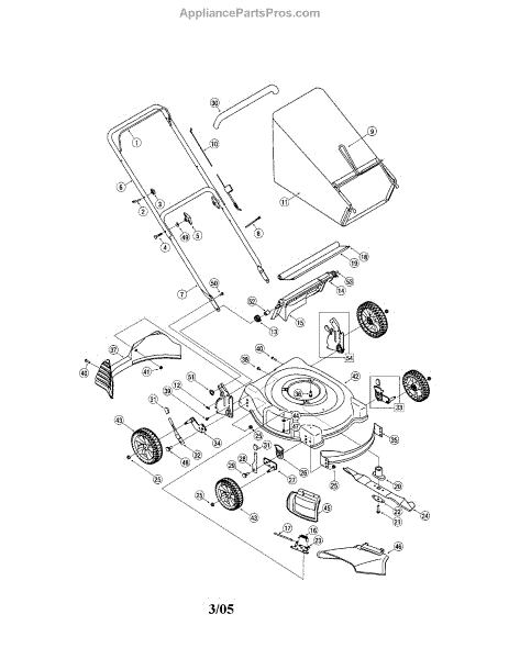 Lower handle for walk-behind lawn mowers. Replace your cracked, bent, or broken lower handle assembly to restore proper mower operation and control.