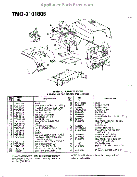 Parts for Mtd 3101805: 18Hp 42" Lawn Tractor Parts
