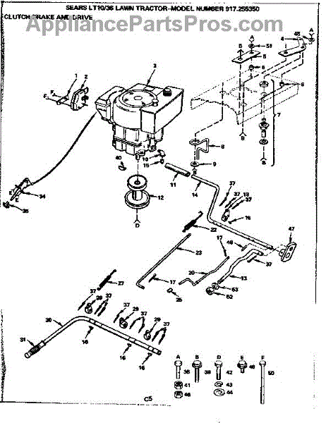 Parts for Craftsman 917255350: 36 Lawn Tractor / Clutch Brake And Drive Parts