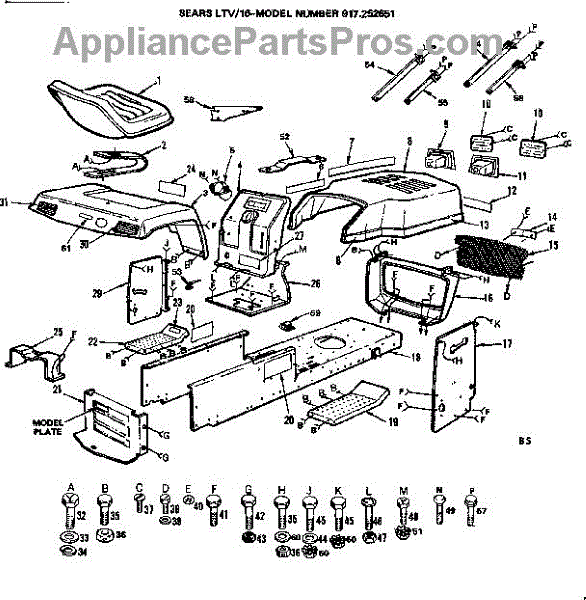 Parts for Craftsman 917252651: 16 Lawn Tractor / Enclosures Parts