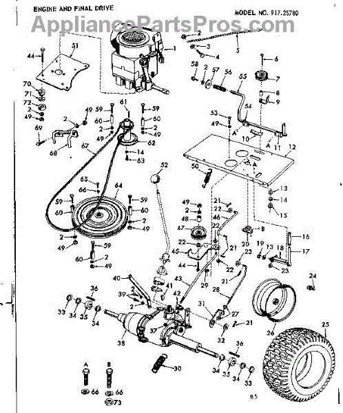 Parts for Craftsman 91725780: 10E Lawn Tractor / Engine And Final Drive Parts