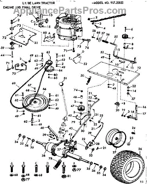 Parts for Craftsman 91725820: 8E Lawn Tractor / Engine And Final Drive Parts