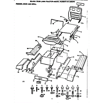 Parts for Craftsman 917255340: 36 Lawn Tractor / Fender, Hood And Grill Parts