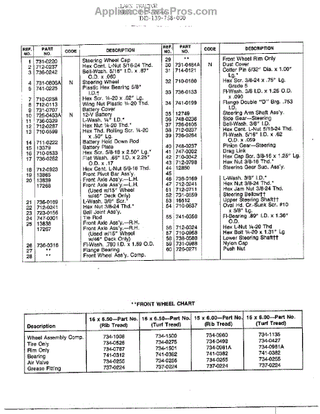 Parts for Mtd 139-758-000: Lawn Tractor / Front Wheel Chart Page 2 Parts