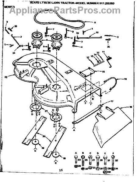 Parts for Craftsman 917255350: 36 Lawn Tractor / Mower Parts
