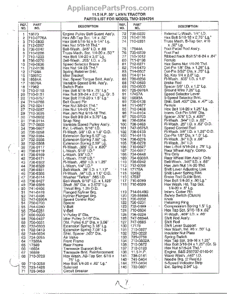 Parts for Mtd 3394704: 11.5 Hp 38" Lawn Tractor Page 6 Parts