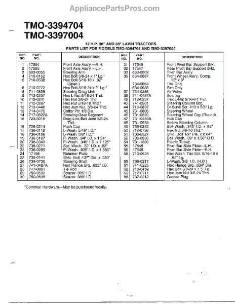 Parts for Mtd 3394704: 12 Hp 38" Lawn Tractor Page 4 Parts