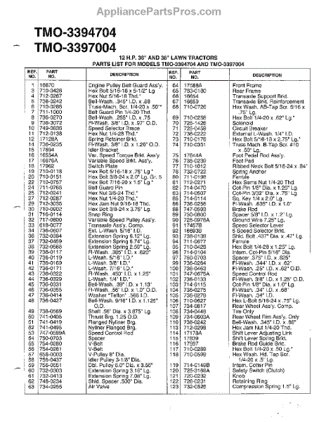 Parts for Mtd 3394704: 12 Hp 38" Lawn Tractor Page 6 Parts