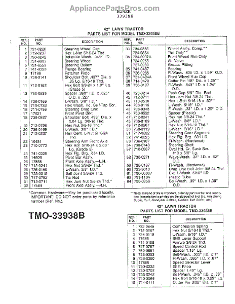 Parts for Mtd 33938B: 42" Lawn Tractor Page 4 Parts