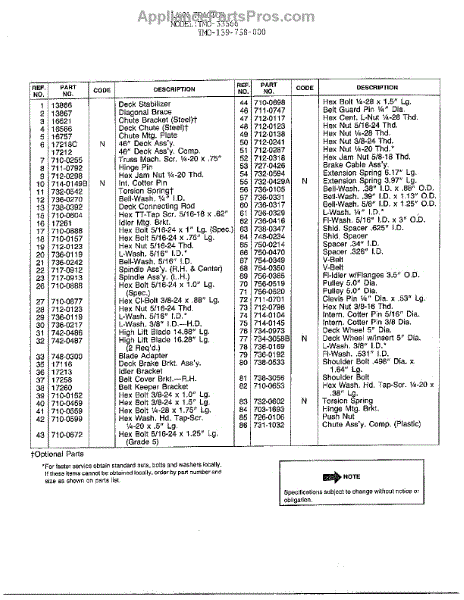 Parts for 139-758-000