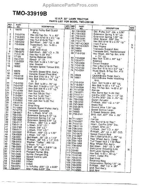Parts for Mtd 33919B: 12 Hp 32" Lawn Tractor Page 7 Parts