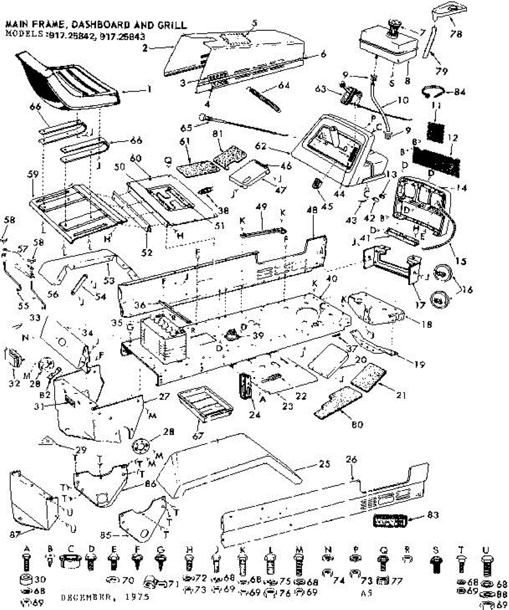 Parts for Craftsman 91725842: 10E Lawn Tractor & Rotary Mower / Main Frame,Dashboard & Grill Parts