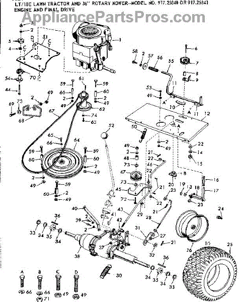 Parts for Craftsman 91725840: 10E Lawn Tractor And 36 In Rotary Mower / Engine & Final Drive Parts