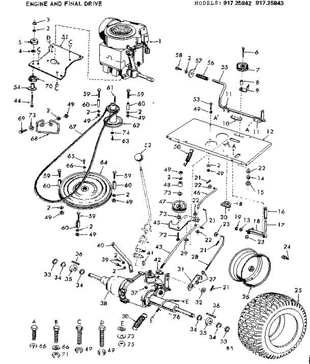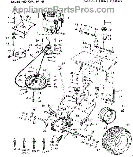 Parts for Craftsman 91725842: 10E Lawn Tractor & Rotary Mower / Engine And Final Drive Parts