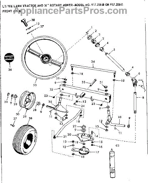 Parts for Craftsman 91725841: 10E Lawn Tractor And 36 In Rotary Mower / Front Axle Parts