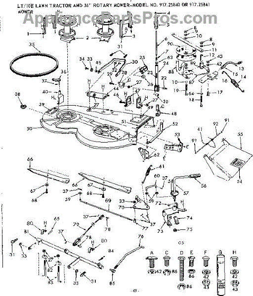 Parts for Craftsman 91725840: 10E Lawn Tractor And 36 In Rotary Mower / Mower Parts